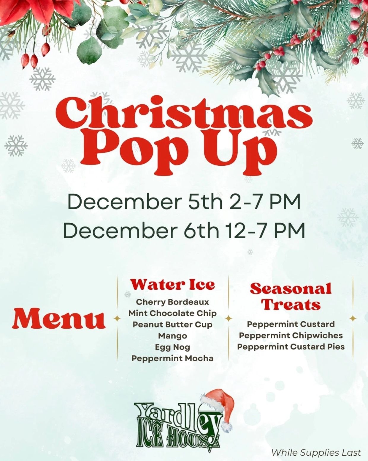 The Yardley Ice House has closed for the 2025 Season but will reopen for two days in December for a Christmas Pop Up! Seasonal treats as well as t-shirts, hats, and gift cards will be for sale!